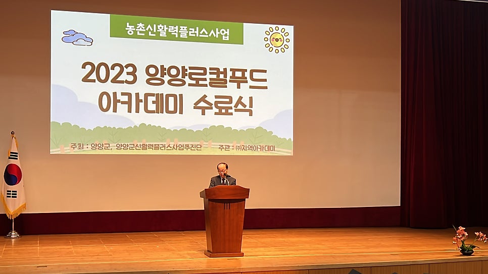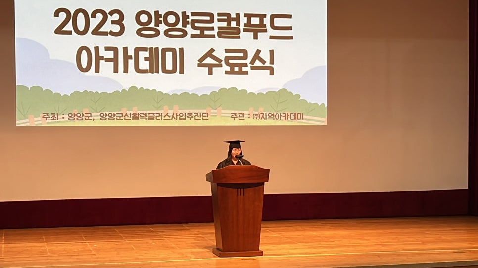저희 양양군 신활력플러스사업 추진단 단장님은 로컬푸드 아카데미 졸업식을
